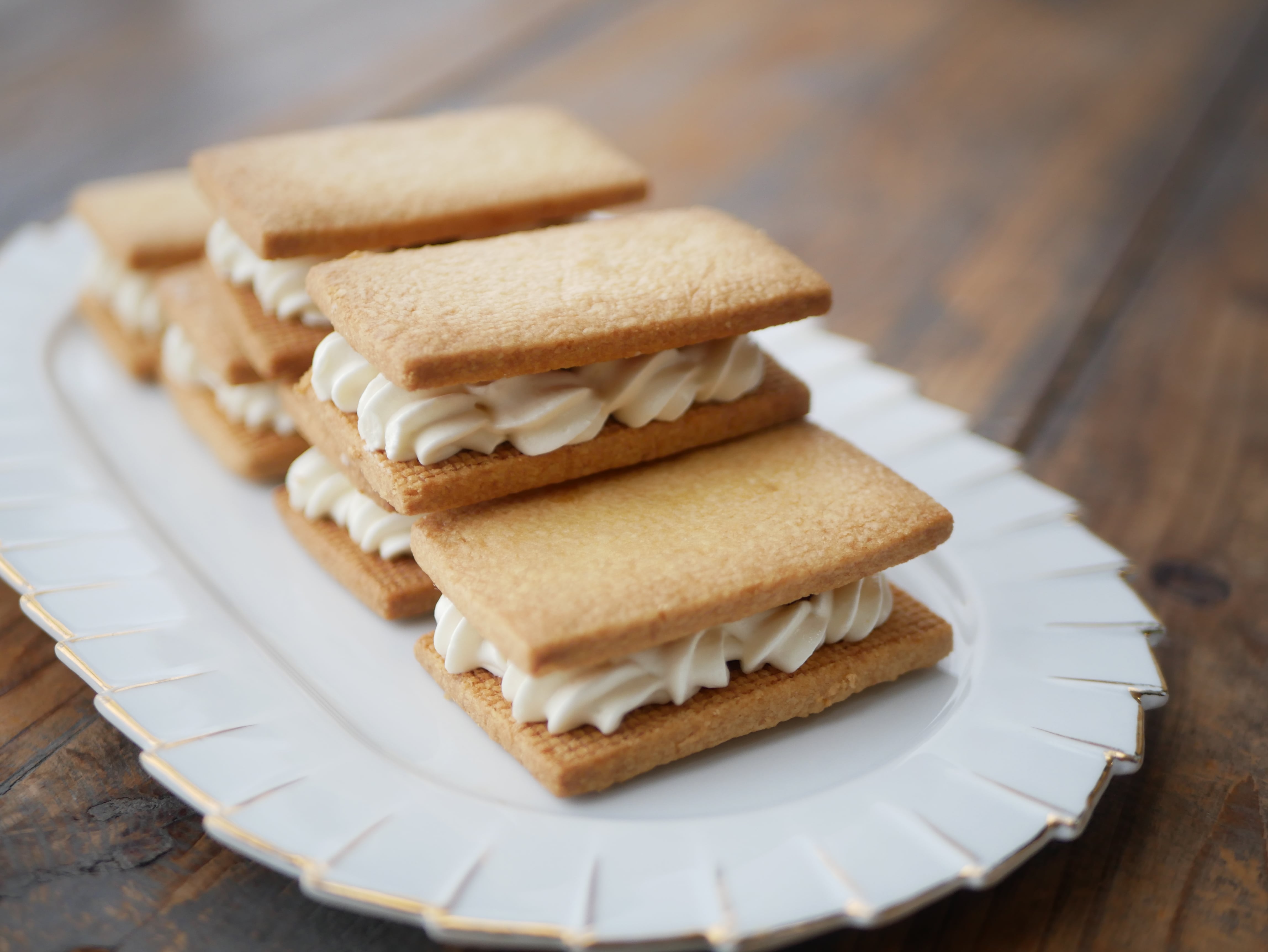 サクサクの米粉サブレに、苺とホワイトチョコのバタークリームと、苺ジャムをサンドした、春らしいバターサンド。